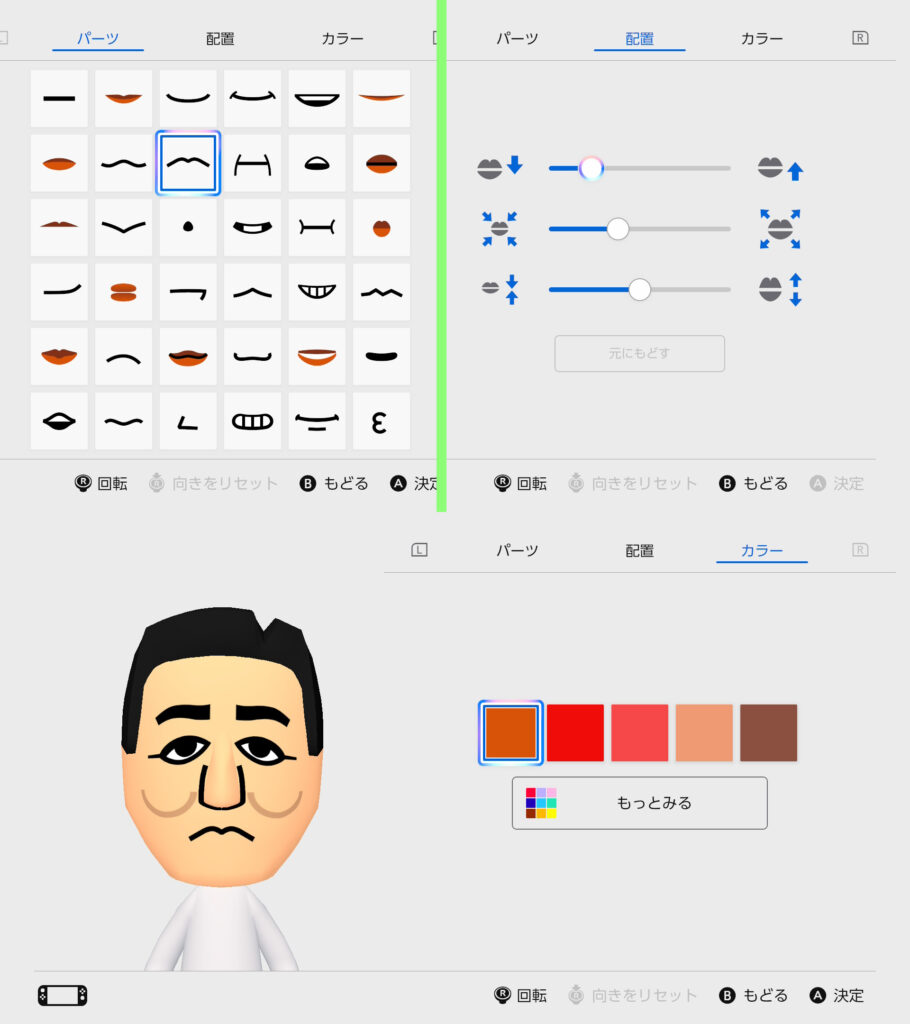 今回のMiiではひげ&ほくろパーツは使用していません。